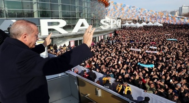 Yerel seçimlere 3 ay kaldığını hatırlatan Erdoğan, "2019 yılı milletimiz için, tüm insanlık için hayırlara vesile olsun. Allah yar ve yardımcınız olsun. Unutmayın tek millet, tek bayrak, tek vatan, tek devlet. Bu devletimize illetleri dokundurtmayacağız. Bu devletimizi daha güçlü kılacağız. Başkentimizi daha güzel yapacağız ve bunu ancak iktidarla uyum içerisinde olan bir belediye gerçekleştirir. Bu yolda bunu başaracağız" dedi.