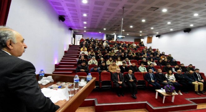 Erzurum Kalkınma Vakfı (ERVAK) Başkanı Eczacı Erdal Güzel, Milli Mücadele'nin manevi lideri İstiklal Marşı yazarı, İstiklal Şairi Mehmet Akif Ersoy'un ölümünün 87"nci yıl dönümü münasebetiyle Adalet Bakanlığı Hüseyin Turgut Eğitim Merkezi Konferans Salonu'nda Mehmet Akif Ersoy'un hayatını anlattı.
